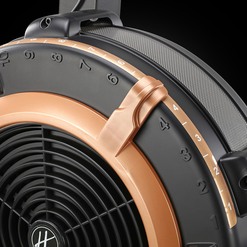 - Ce système de résistance à base d'air réagit à chaque coup de rame lors de votre séance d'entraînement. Plus vous pédalez, plus le volume d'air déplacé par le ventilateur vous donne une plus grande intensité d'entraînement et vous permet de brûler plus de calories.