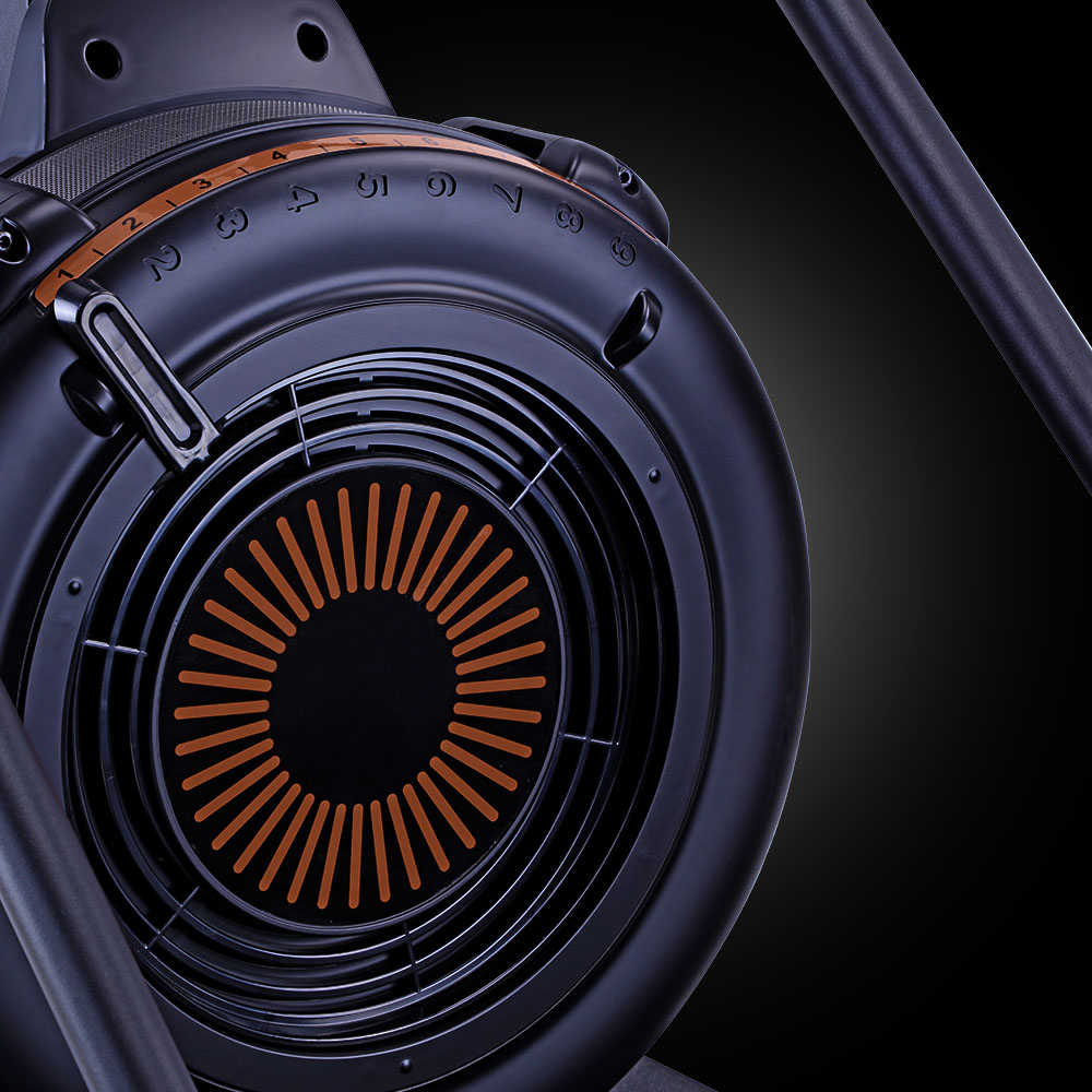 - Ce système de résistance à base d'air réagit à chaque coup de rame lors de votre séance d'entraînement. Plus vous tirez, plus le volume d'air déplacé par le ventilateur vous donne une plus grande intensité d'entraînement et vous permet de brûler plus de calories.